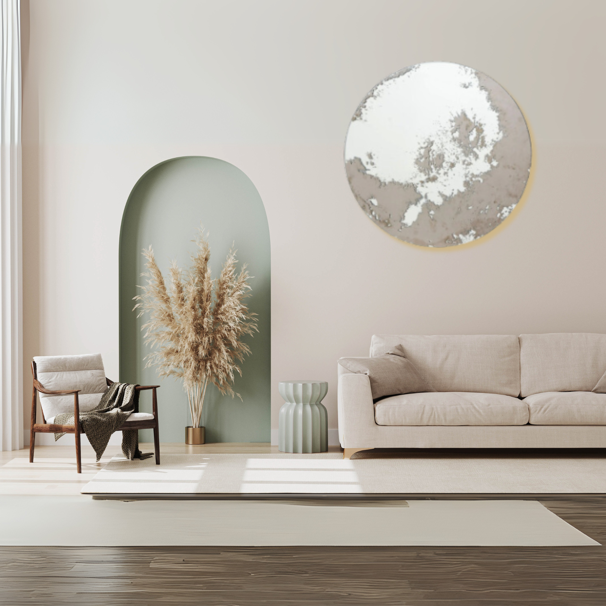 Each mirror is hand-made within a meticulously designed moon shape, mimicking that of a real moon's craters. The high-quality, distortion-free glass reflects light beautifully. Key Features: Versatile Decor: Its minimalist design...